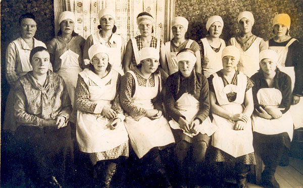 Kotitalouskurssin oppilaita Luoma-Kuutin talossa 1932.